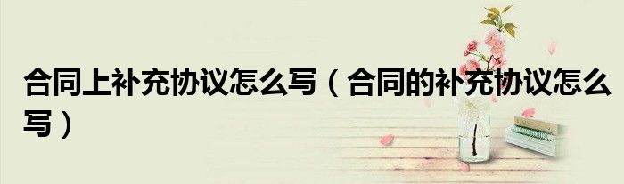 关于合同上补充协议怎么写,合同的补充协议怎么写这个很多人还不知道,今天菲菲来为大家解答以上的问题,现在让我们一起来看看吧!