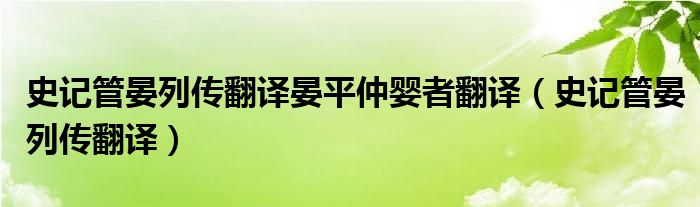 关于史记管晏列传翻译晏平仲婴者翻译,史记管晏列传翻译这个很多人还不知道,今天菲菲来为大家解答以上的问题,现在让我们一起来看看吧!