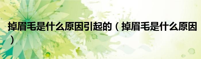 关于掉眉毛是什么原因引起的,掉眉毛是什么原因这个很多人还不知道,今天菲菲来为大家解答以上的问题,现在让我们一起来看看吧!