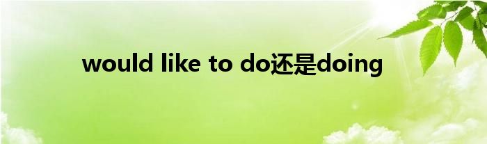 关于would like to do还是doing这个很多人还不知道,今天菲菲来为大家解答以上的问题,现在让我们一起来看看吧!