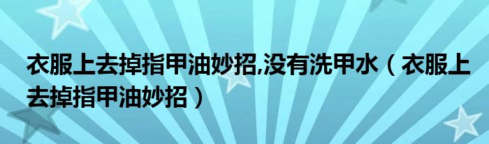 大家好,小晋来为大家解答以下问题,关于衣服上去掉指甲油妙招,没有洗甲水,衣服上去掉指甲油妙招很多人还不知道,今天让我们一起来看看吧!