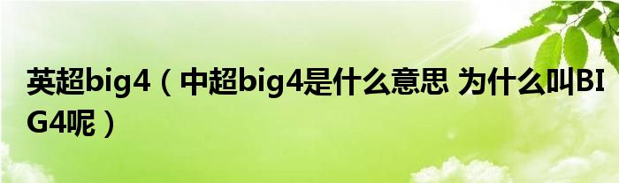 关于英超big4,中超big4是什么意思 为什么叫BIG4呢这个很多人还不知道,今天菲菲来为大家解答以上的问题,现在让我们一起来看看吧!