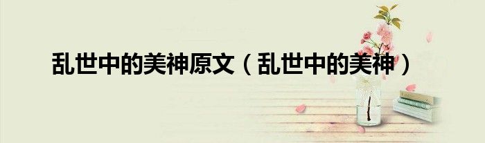关于乱世中的美神原文,乱世中的美神这个很多人还不知道,今天菲菲来为大家解答以上的问题,现在让我们一起来看看吧!