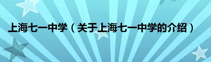 大家好,今天小乐来为大家解答以上的问题。上海七一中学,关于上海七一中学的介绍很多人还不知道,现在让我们一起来看看吧!