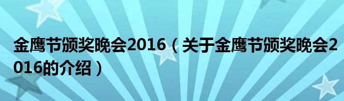 大家好,今天小乐来为大家解答以上的问题。金鹰节颁奖晚会2016,关于金鹰节颁奖晚会2016的介绍很多人还不知道,现在让我们一起来看看吧!