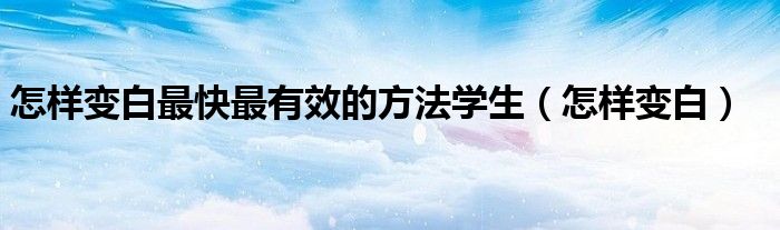 大家好,小晋来为大家解答以下问题,关于怎样变白最快最有效的方法学生,怎样变白很多人还不知道,今天让我们一起来看看吧!