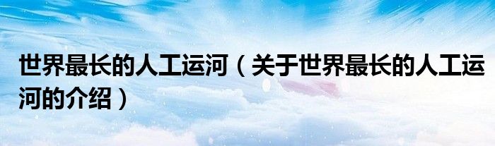 世界最长的人工运河(关于世界最长的人工运河的介绍)