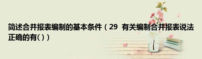 关于简述合并报表编制的基本条件,29 有关编制合并报表说法正确的有( )这个很多人还不知道,今天菲菲来为大家解答以上的问题,现在让我们一起来看看吧!