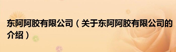 东阿阿胶有限公司(关于东阿阿胶有限公司的介绍)