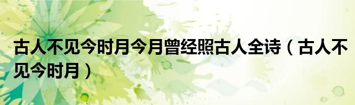 关于古人不见今时月今月曾经照古人全诗,古人不见今时月这个很多人还不知道,今天菲菲来为大家解答以上的问题,现在让我们一起来看看吧!