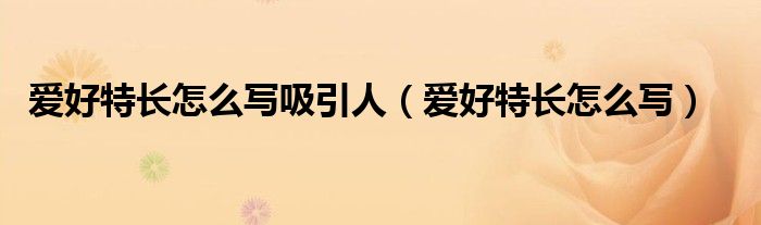 关于爱好特长怎么写吸引人,爱好特长怎么写这个很多人还不知道,今天菲菲来为大家解答以上的问题,现在让我们一起来看看吧!