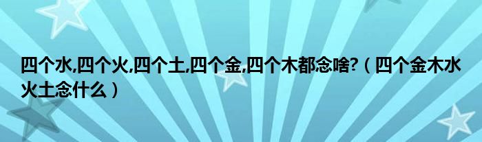 关于四个水,四个火,四个土,四个金,四个木都念啥?,四个金木水火土念什么这个很多人还不知道,今天菲菲来为大家解答以上的问题,现在让我们一起来看看吧!