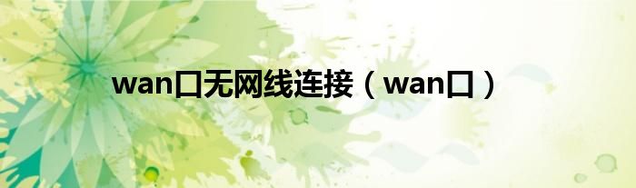 关于wan口无网线连接,wan口这个很多人还不知道,今天菲菲来为大家解答以上的问题,现在让我们一起来看看吧!