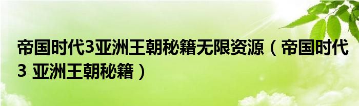 关于帝国时代3亚洲王朝秘籍无限资源,帝国时代3 亚洲王朝秘籍这个很多人还不知道,今天菲菲来为大家解答以上的问题,现在让我们一起来看看吧!