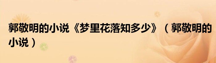 关于郭敬明的小说《梦里花落知多少》,郭敬明的小说这个很多人还不知道,今天菲菲来为大家解答以上的问题,现在让我们一起来看看吧!