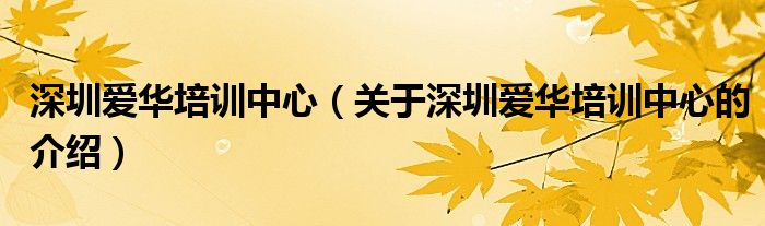 大家好,今天小乐来为大家解答以上的问题。深圳爱华培训中心,关于深圳爱华培训中心的介绍很多人还不知道,现在让我们一起来看看吧!