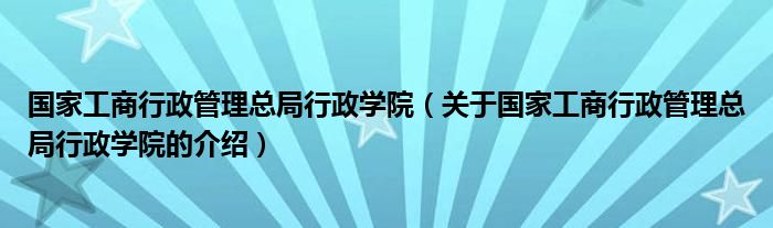 国家工商行政管理总局行政学院(关于国家工商行政管理总局行政学院的介绍)