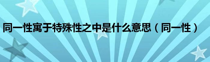 关于同一性寓于特殊性之中是什么意思,同一性这个很多人还不知道,今天菲菲来为大家解答以上的问题,现在让我们一起来看看吧!