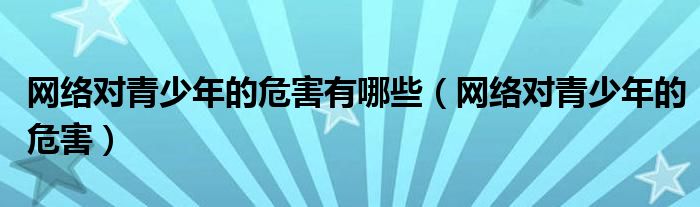 关于网络对青少年的危害有哪些,网络对青少年的危害这个很多人还不知道,今天菲菲来为大家解答以上的问题,现在让我们一起来看看吧!