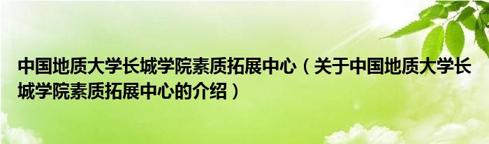 大家好,今天小乐来为大家解答以上的问题。中国地质大学长城学院素质拓展中心,关于中国地质大学长城学院素质拓展中心的介绍很多人还不知道,现在让我们一起来看看吧!