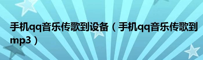 大家好,小晋来为大家解答以下问题,关于手机qq音乐传歌到设备,手机qq音乐传歌到mp3很多人还不知道,今天让我们一起来看看吧!