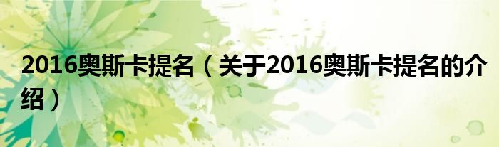 大家好,今天小乐来为大家解答以上的问题。2016奥斯卡提名,关于2016奥斯卡提名的介绍很多人还不知道,现在让我们一起来看看吧!