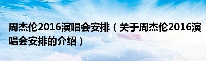 大家好,今天小乐来为大家解答以上的问题。周杰伦2016演唱会安排,关于周杰伦2016演唱会安排的介绍很多人还不知道,现在让我们一起来看看吧!