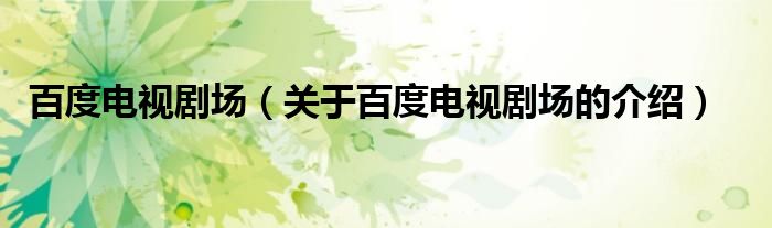 大家好,今天小乐来为大家解答以上的问题。百度电视剧场,关于百度电视剧场的介绍很多人还不知道,现在让我们一起来看看吧!