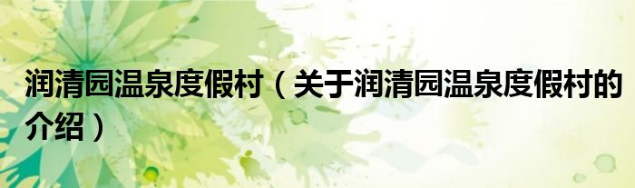 大家好,今天小乐来为大家解答以上的问题。润清园温泉度假村,关于润清园温泉度假村的介绍很多人还不知道,现在让我们一起来看看吧!