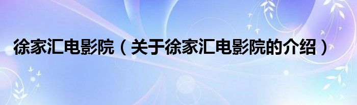 徐家汇电影院(关于徐家汇电影院的介绍)