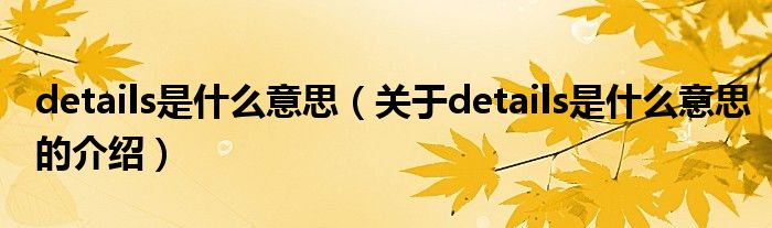 大家好,小都来为大家解答以上的问题。details是什么意思,关于details是什么意思的介绍很多人还不知道,现在让我们一起来看看吧!