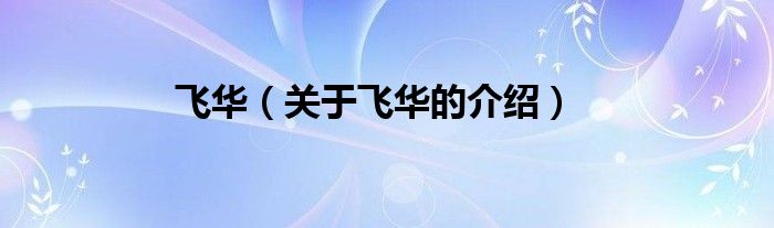 大家好,小都来为大家解答以上的问题。飞华,关于飞华的介绍很多人还不知道,现在让我们一起来看看吧!