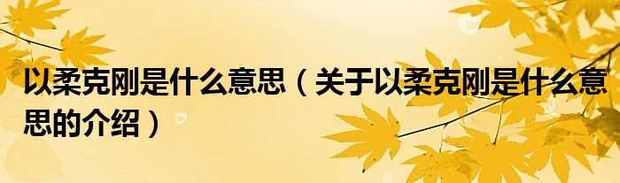 以柔克刚是什么意思(关于以柔克刚是什么意思的介绍)