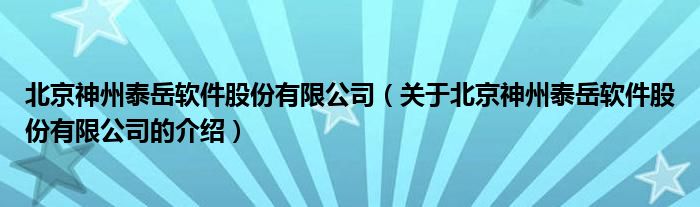 北京神州泰岳软件股份有限公司(关于北京神州泰岳软件股份有限公司的介绍)