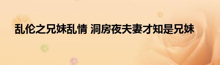 大家好.我是互联百科的羽儿,现在为大家解决以上乱伦之兄妹乱情 洞房夜夫妻才知是兄妹的问题.