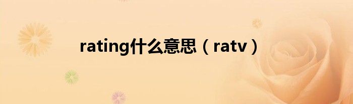 大家好,雨雨来为大家解答以上问题,rating什么意思,ratv很多人还不知道,现在让我们一起来看看吧!