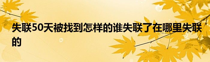 大家好.我是互联百科的羽儿,现在为大家解决以上失联50天被找到怎样的谁失联了在哪里失联的的问题.