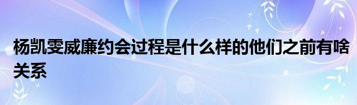 大家好.我是互联百科的羽儿,现在为大家解决以上杨凯雯威廉约会过程是什么样的他们之前有啥关系的问题.