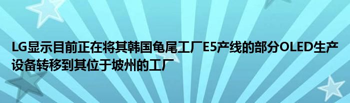 集微网消息,LG显示目前正在将其韩国龟尾工厂E5产线的部分OLED生产设备转移到其位于坡州的工厂,或是为生产苹果计划用于未来新款iPad的OLED面板做准备。