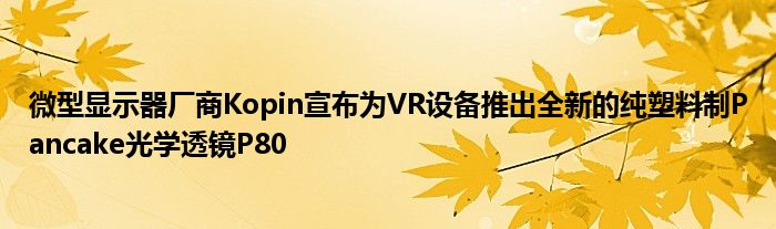 2022年1月12日整理发布:近日,微型显示器厂商Kopin宣布为VR设备推出全新的纯塑料制Pancake光学透镜P80,以及1.3英寸、2.6Kx2.6K分辨率的OLED显示屏Lightning。