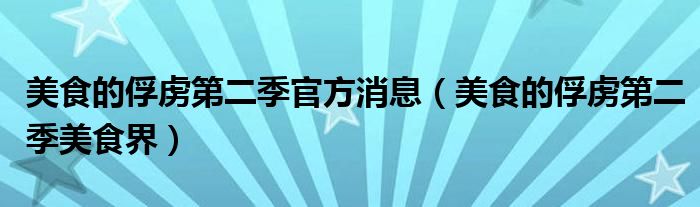 美食的俘虏第二季官方消息(美食的俘虏第二季美食界)