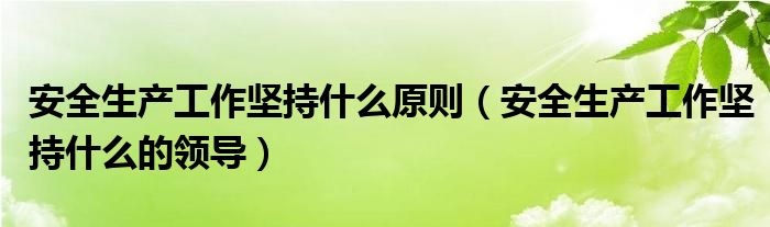关于安全生产工作坚持什么原则,安全生产工作坚持什么的领导这个很多人还不知道,今天菲菲来为大家解答以上的问题,现在让我们一起来看看吧!