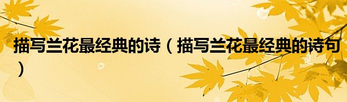 描写兰花最经典的诗(描写兰花最经典的诗句)