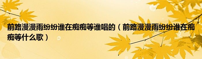 关于前路漫漫雨纷纷谁在痴痴等谁唱的,前路漫漫雨纷纷谁在痴痴等什么歌这个很多人还不知道,今天菲菲来为大家解答以上的问题,现在让我们一起来看看吧!