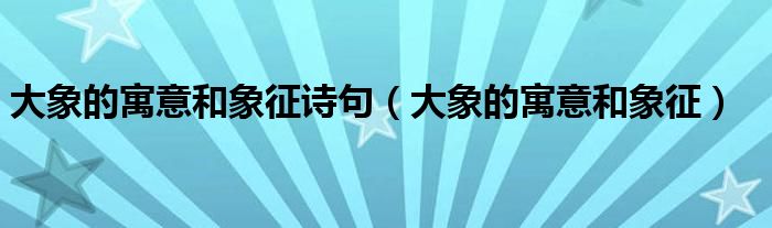 关于大象的寓意和象征诗句,大象的寓意和象征这个很多人还不知道,今天菲菲来为大家解答以上的问题,现在让我们一起来看看吧!