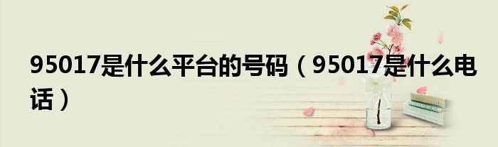 大家好,小晋来为大家解答以下问题,关于95017是什么平台的号码,95017是什么电话很多人还不知道,今天让我们一起来看看吧!