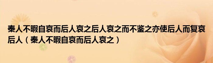 关于秦人不暇自哀而后人哀之后人哀之而不鉴之亦使后人而复哀后人,秦人不暇自哀而后人哀之这个很多人还不知道,今天菲菲来为大家解答以上的问题,现在让我们一起来看看吧!