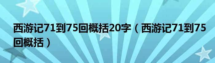 关于西游记71到75回概括20字,西游记71到75回概括这个很多人还不知道,今天菲菲来为大家解答以上的问题,现在让我们一起来看看吧!