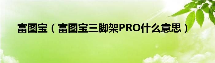 小鱼来为大家解答以下问题,富图宝,富图宝三脚架PRO什么意思很多人还不知道,现在让我们一起来看看吧!