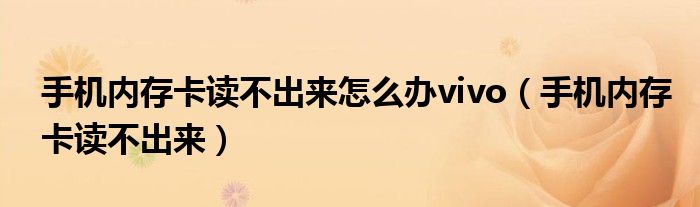 手机内存卡读不出来怎么办vivo(手机内存卡读不出来)